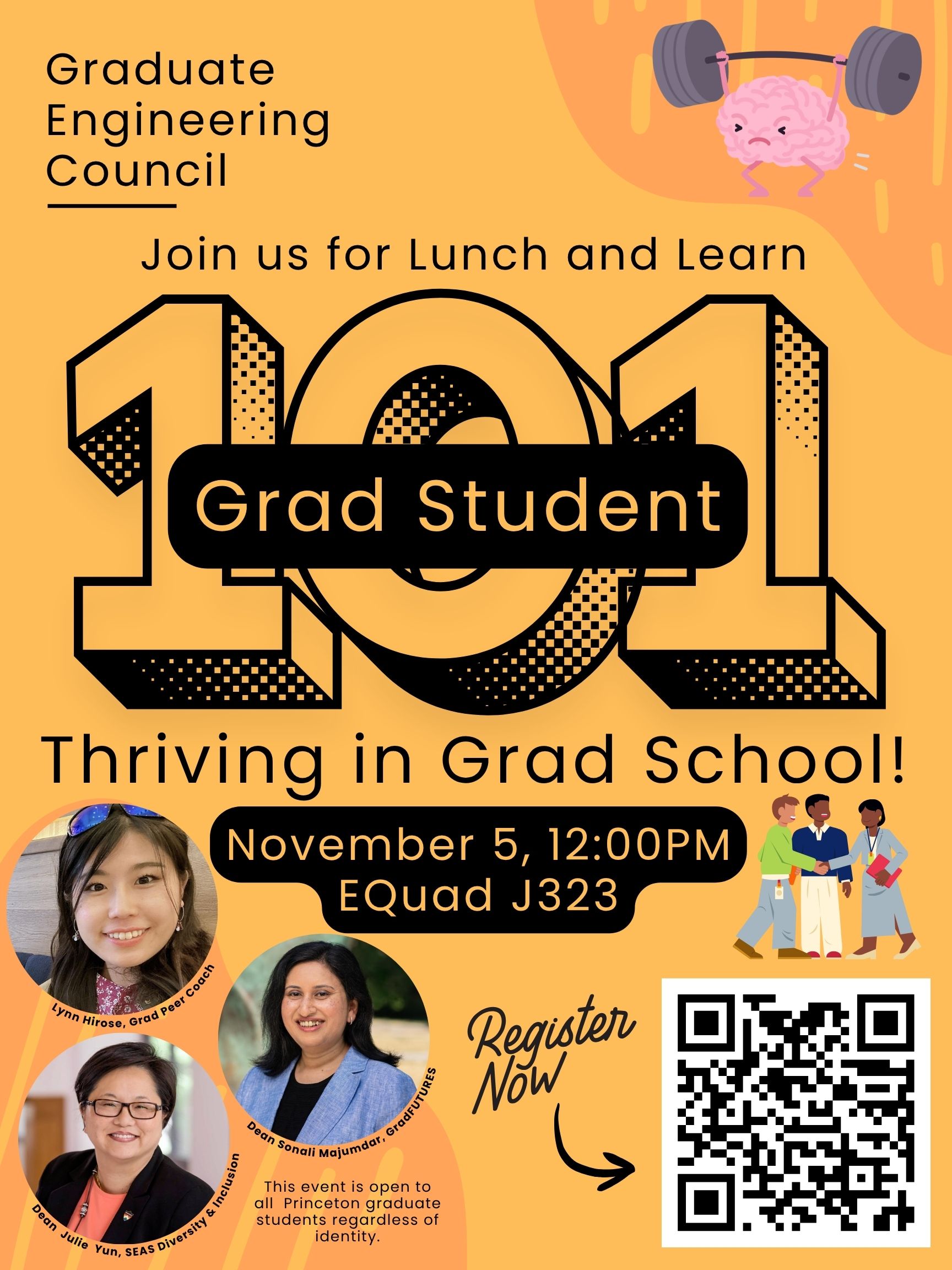Starting graduate school is exciting—but it can also feel overwhelming. Join us for “Grad Student 101: Thriving in Grad School!”, a lunch and learn session designed to help you plan your grad school journey, balance career goals with well-being, and set yourself up for success.